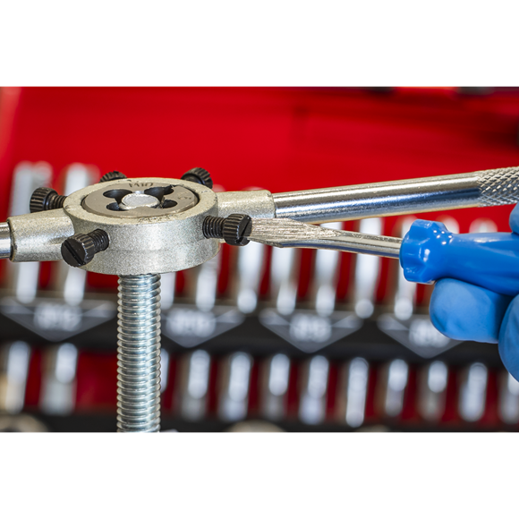 - PROFESSIONAL QUALITY – M3 to M12 alloy steel tap and die set.