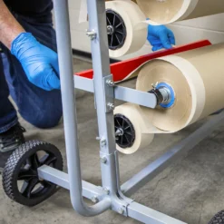 Four roll dispenser accepts two rolls up to 300mm and two rolls up to 450mm. Easy to load paper rolls and masking tape. Wide base for added stability. Automatically applies adhesive tape to edges of masking paper. Papers and tapes not included.