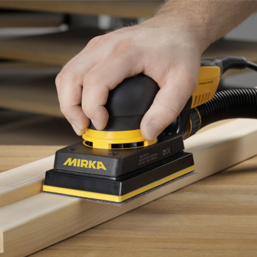 Mirka’s dust-free solution is the combination of an ergonomic power tool and a completely symmetrical net abrasive together with an efficient dust extractor. Standing at only 10 cm high, the Mirka® DEOS 353CV features a compact and very low profile offering optimum manoeuvrability and helping to deliver a precise and efficient sanding performance. The professional 1230 M AFC GB 230V dust extractor has a high-performance motor and turbine. Which creates 250 mbar vacuum and 4500 l/min air flow. The AutoStart function increases the lifetime of the motor and reduces noise