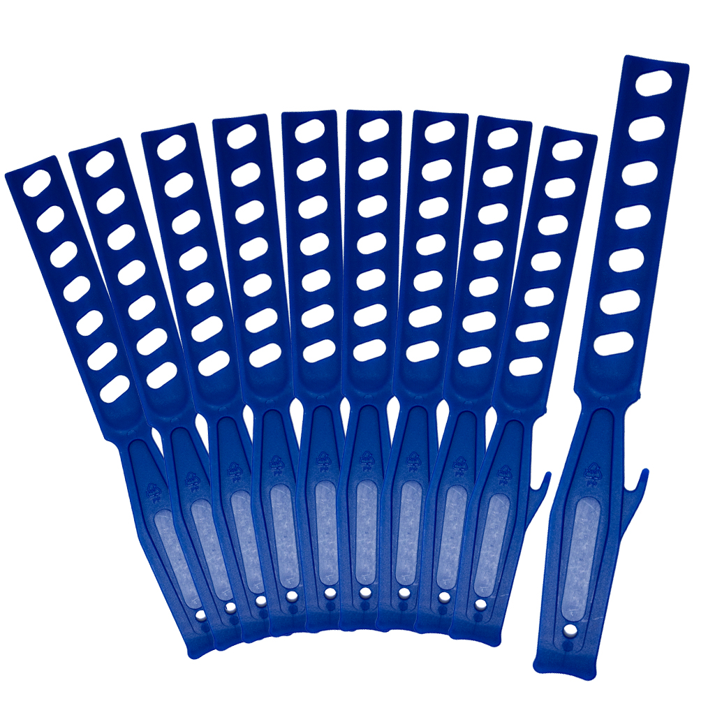 Pack of 10 re-usable plastic paint mixings sticks, specially designed to mix paint thoroughly.